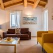 Die giebelhohe Holzbalken-Decke und der hochwertige Parkettboden aus Landhausdielen verleihen der Wohnung Cuore eine besondere Wohnatmosphäre. Der großzügige Wohn-Essbereich ist ausgestattet mit einer offenen Küche, einem Esstisch und 4 Stühlen sowie einem Schlafsofa (1,40 x 2,00 m), zwei Lounge Sesseln sowie Flachbild-TV mit den üblichen Satelliten-Programmen. Die beiden Schlafzimmer verfügen jeweils über hochwertige Betten (1,80 m x 2,00 m und 1,60 m x 1,90 m), großzügige Kleiderschränke, einen Tresor sowie ausreichend Ablage- und Arbeitsflächen. Sowohl das Wohnzimmer als auch eines der Schlafzimmer haben Zugang zum nach Süden ausgerichteten Balkon, der nahezu den ganzen Tag von der Sonne verwöhnt wird. Alle Räume sind hell und lichtdurchflutet und bieten eine traumhafte Aussicht auf den See und das Monte-Baldo-Massiv.